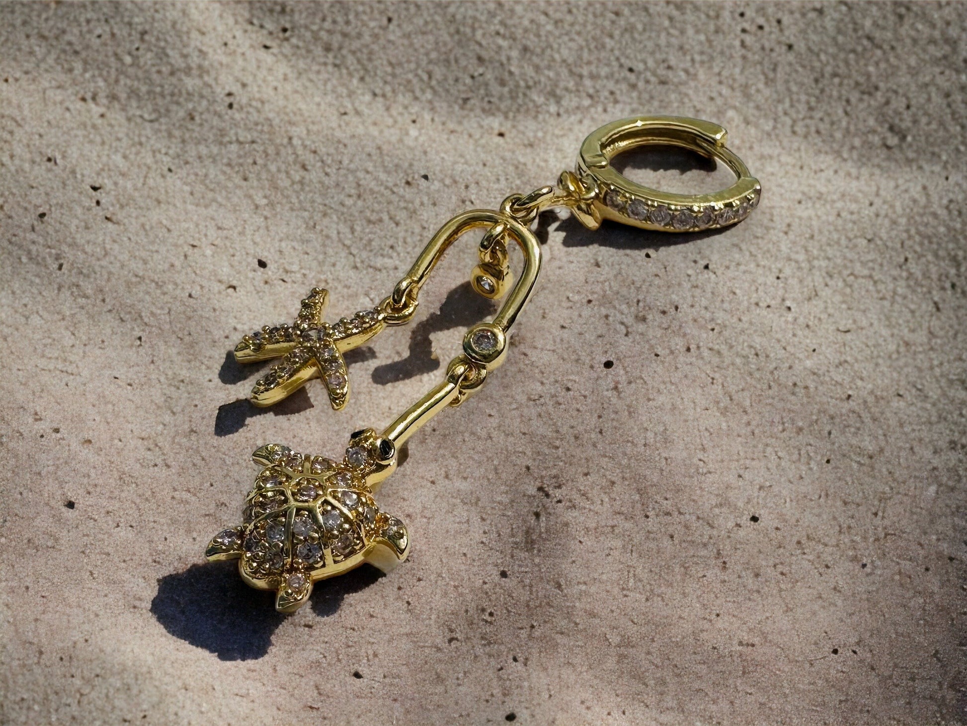 Le design détaillé de la tortue et des étoiles de mer évoque la beauté de la nature et l'énergie des vacances au bord de la mer. Apportez une touche d'éclat et de beauté estivale à vos oreilles avec notre boucle d'oreille unique.