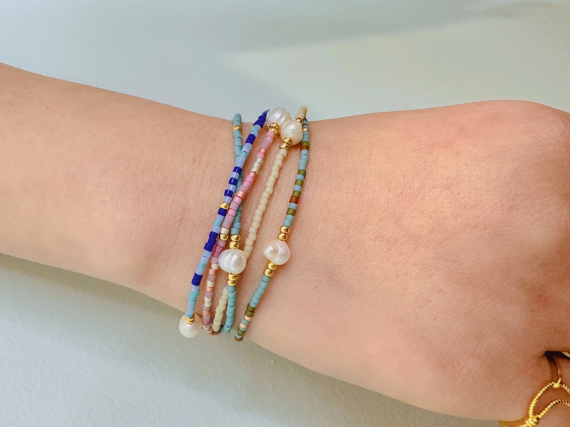 Bracelets de perles miyuki avec une perle naturelle baroque, dans un esprit bohème-chic.
