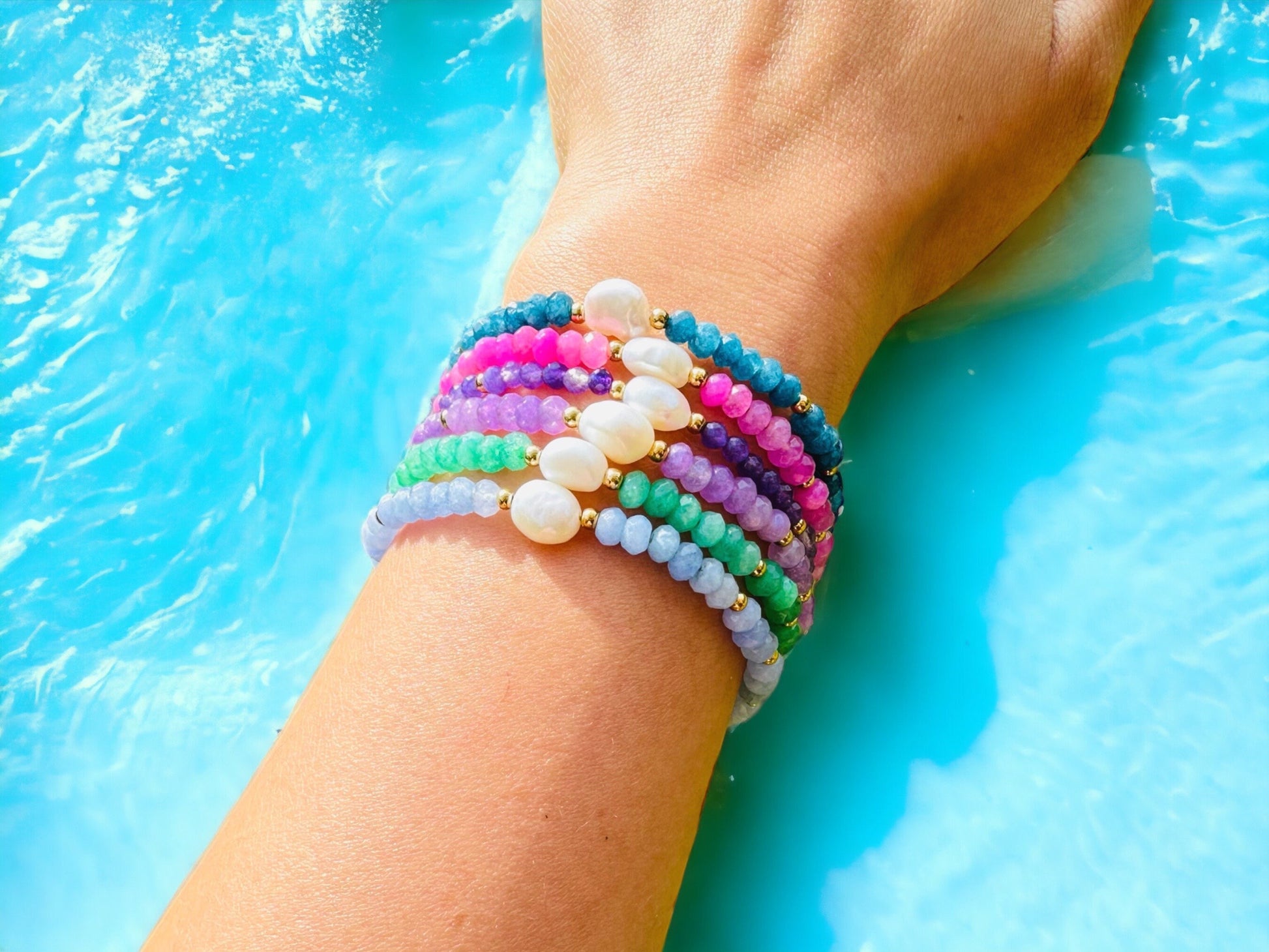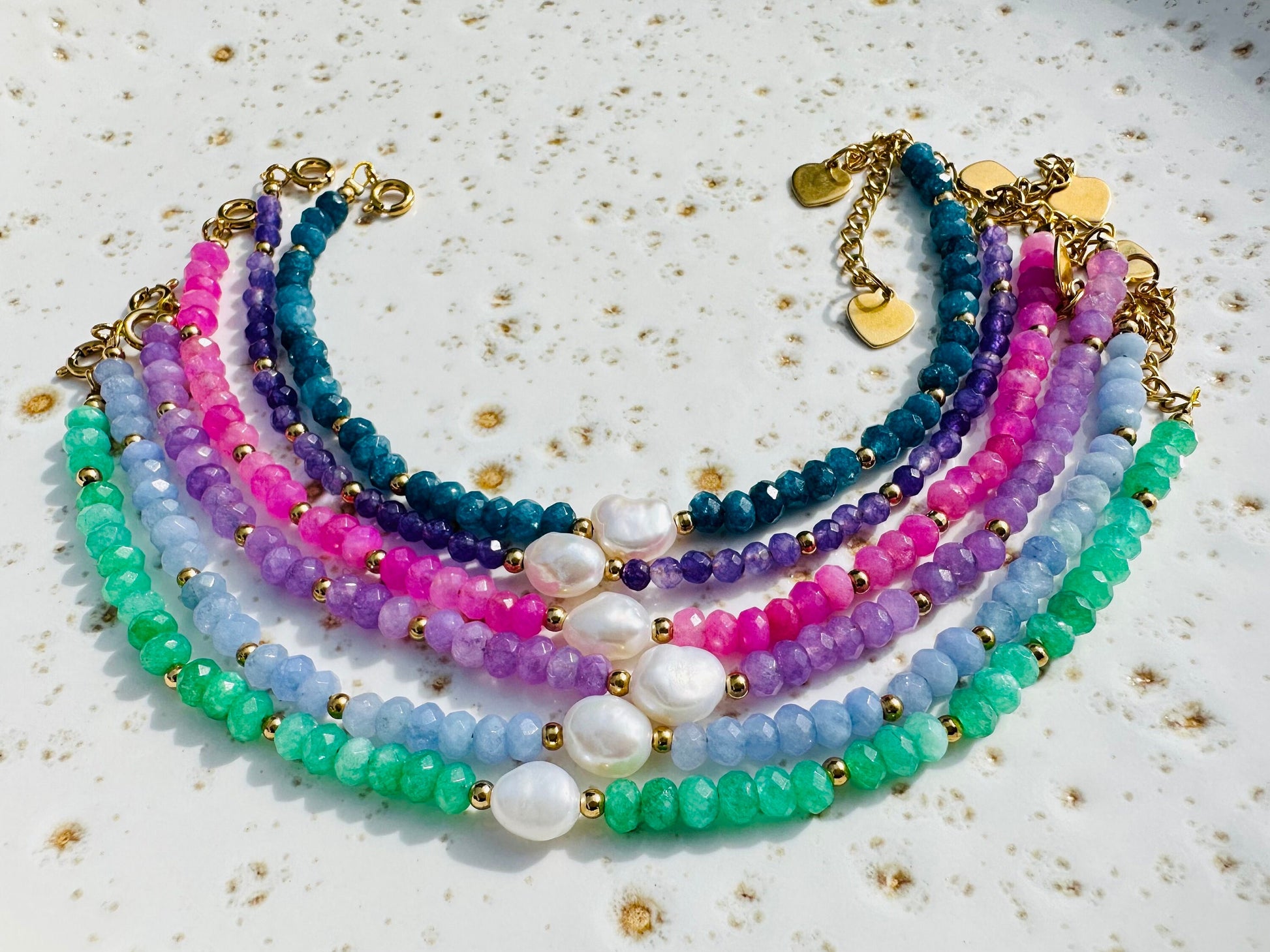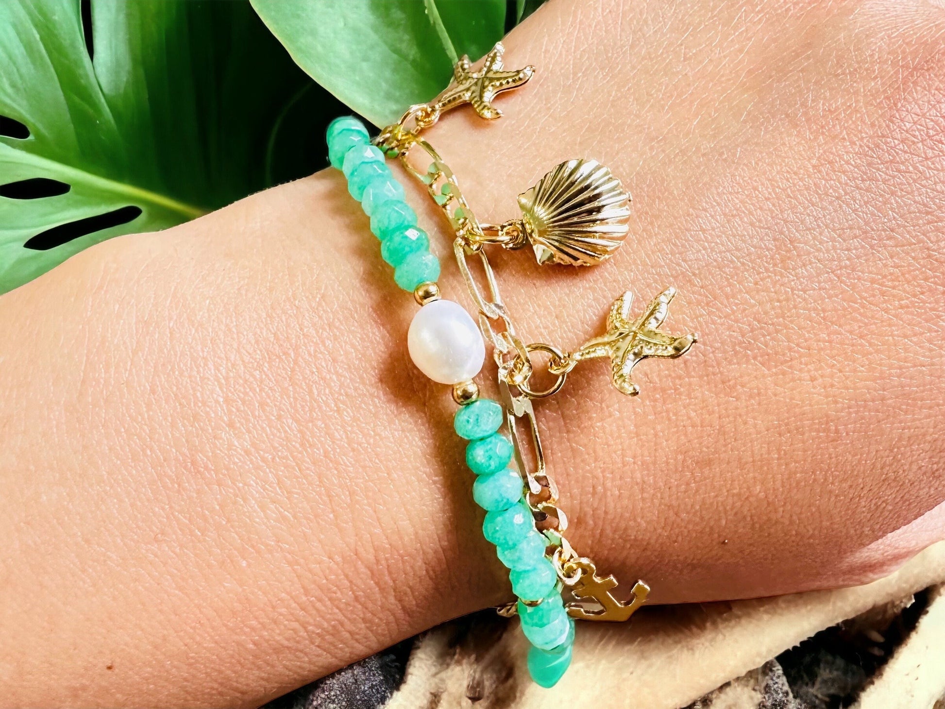 Découvrez nos bracelets parfaits pour l'été. Il est conçu avec des perles de pierres précieuses naturelles, avec une somptueuse perle baroque.