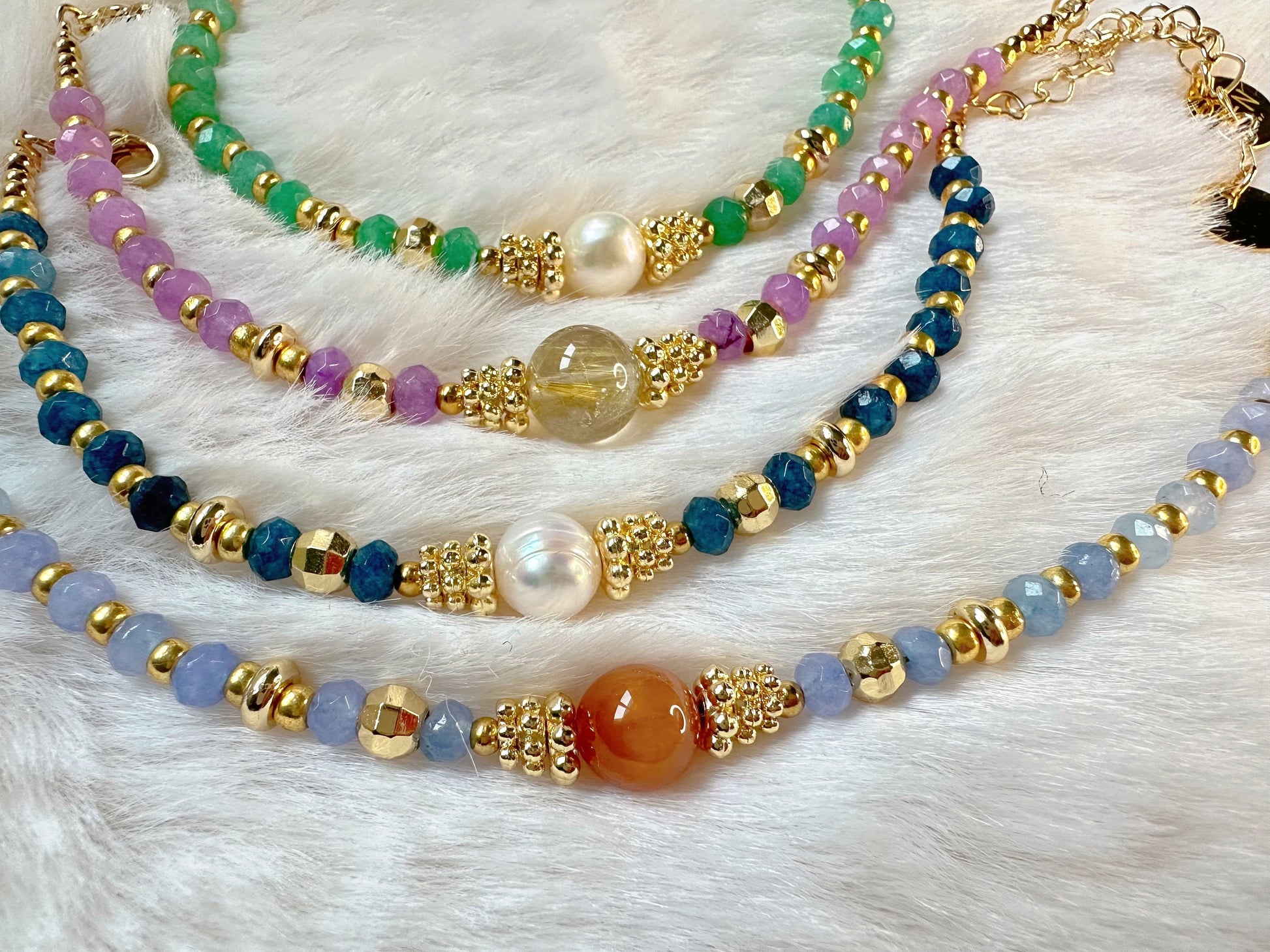 Chacun de nos bracelets est conçu avec soin, utilisant des matériaux minutieusement sélectionnés. Les accessoires sont en laiton doré à l'or fin, ajoutant une touche de luxe et d'éclat à votre tenue. Ces bracelets sont également assortis avec une version collier pour créer une parure parfaite. (Collier: https://zenateliercrystal.etsy.com/listing/1616337565 )