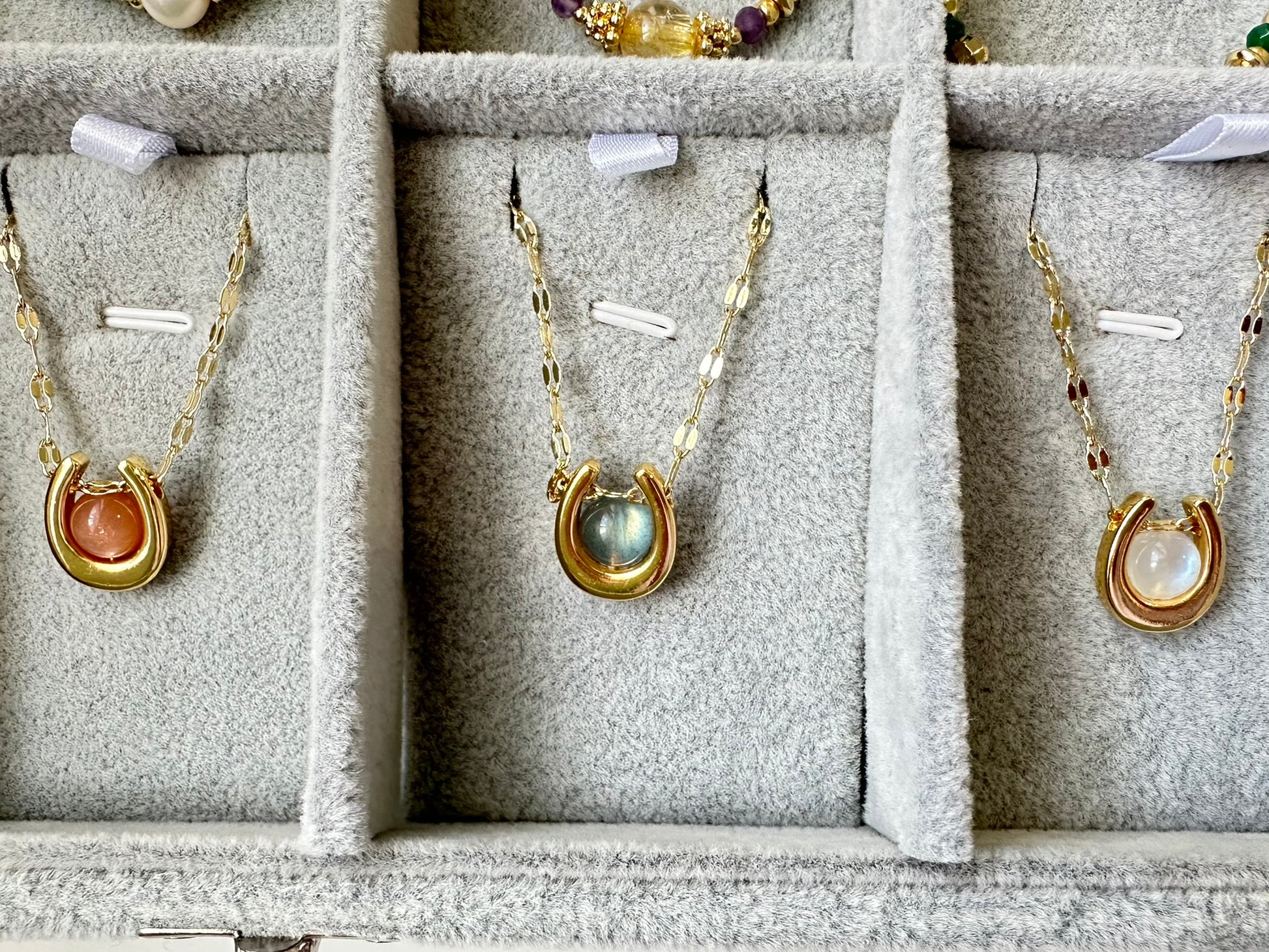 Collier Fer à Cheval | Labradorite Pierre de Lune Sunstone | Bijou Porte-Bonheur